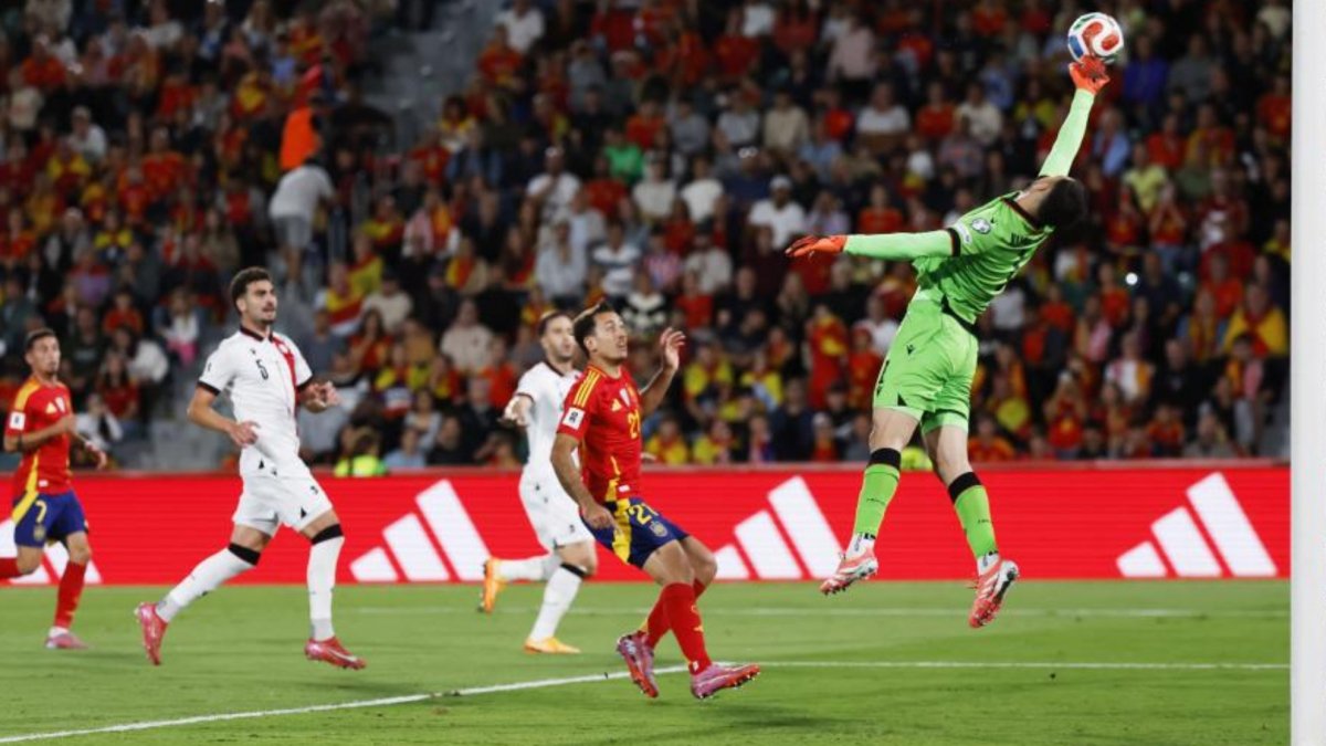 España se fue sólo 1-0 al descanso, con un gol de Yeremy Pino en el minuto 24, pero tuvo ocasiones para haber ampliado el marcador, incluso un penalti que Mamardashvili detuvo a Ferran. El dominio de la selección en el encuentro ante Georgia ha sido absoluto en el primer tiempo. Amos y señores en el verde, los de Luis de la Fuente han monopolizado el control del balón, las llegadas, los remates… Todo.