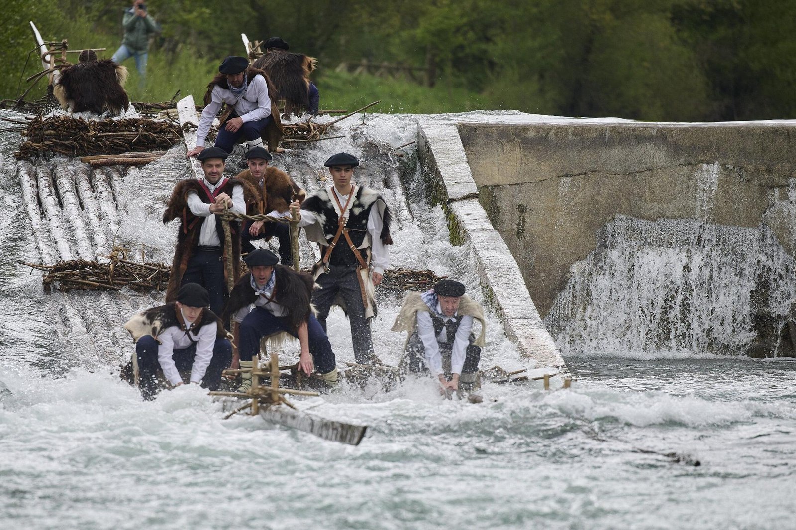 Sábado 3 de mayo. Con la presencia de miles de asistentes, estas embarcaciones vuelven a navegar por las aguas del río Esca hasta finalizar su trayecto en el puente medieval de Burgui.