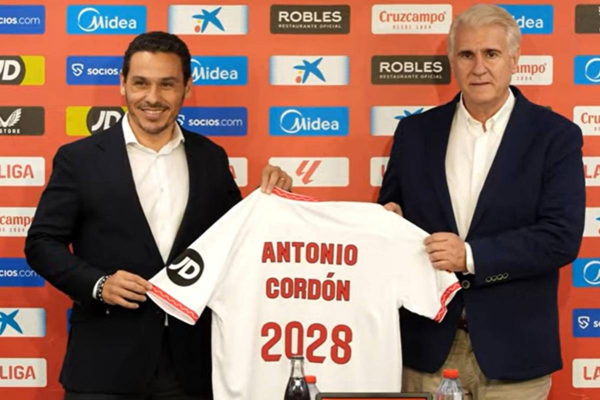 Antonio Cordón ha sido presentado esta mañana ante los medios en la sala de prensa del estadio Ramón Sánchez-Pizjuán. El director de fútbol profesional del Sevilla habló en numerosas ocasiones de la necesidad de hacer una plantilla comprometida y con hambre, más allá de nombres propios. Para el pacense, el Sevilla “es un elefante arrodillado con dos patas” y con el trabajo de todos “se va a levantar muy fuerte”. La situación económica del club no le preocupa y entiende que Matías Almeyda es lo que necesita el Sevilla para abanderar este proceso de regeneración.