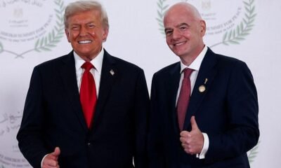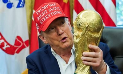 Donald Trump sostiene el trofeo de la Copa Mundial de la FIFA, en el Salón Oval de la Casa Blanca, (Washington, Estados Unidos) (Desde Washington, Estados...