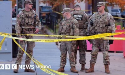 Fuente de la imagen, Getty Images Pie de foto, La Guardia Nacional fue desplegada por Trump para vigilar la seguridad de la capital de EE.UU. Información...