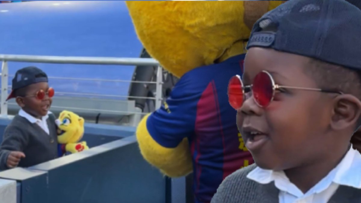 Kayne, hermano de Lamine Yamal, se lo pasó en grande antes del partido entre el Barcelona y el Levante y dejó esta curiosa imagen que grabó ESPN con la mascota culé, Cat.
