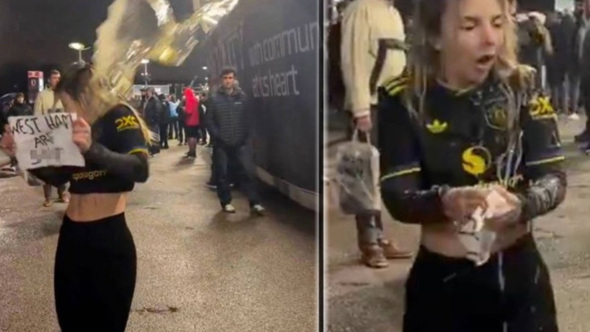 Shania Howard, estrella de OnlyFans que suele generar polémicas en los estadios de fútbol, fue regada con cerveza cuando se metía con el West Ham en el London Stadium.