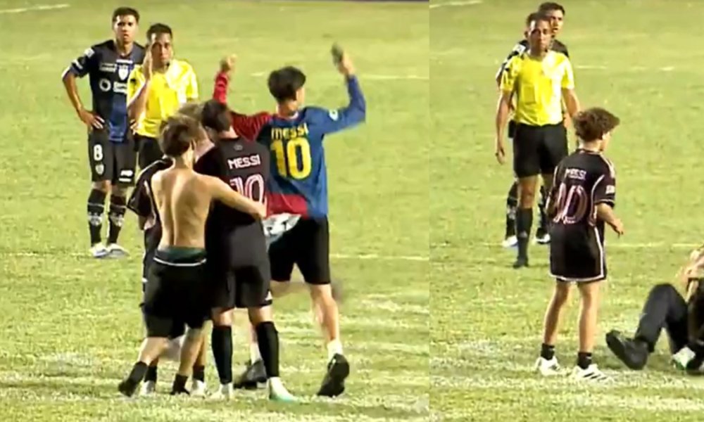 Deportes2 meses agohinchas derribaron a Lionel Messi, hubo pelea, los dos jugaron de negro… (video)