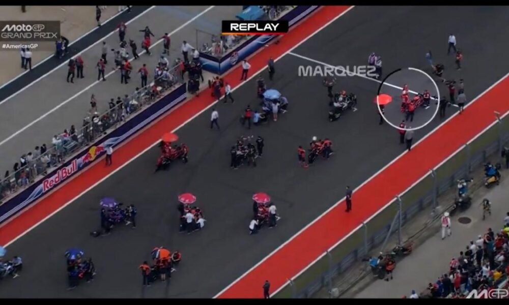 La imagen del Gran Premio de las Américas ocurrió antes de que arrancase. A falta de dos minutos para empezar la carrera, Marc Márquez, ante la...
