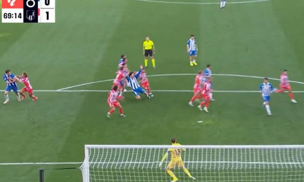 en el minuto 71 Alberola Rojas señaló el punto de penalti a favor del Espanyol: “Acierta el árbitro porque el agarrón de Lenglet a Cabrera es...