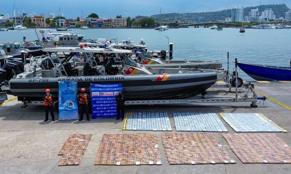 Una operación en el Golfo de Urabá culminó con la detención de cinco individuos y la confiscación de 1.2 toneladas de cocaína – crédito Armada de...
