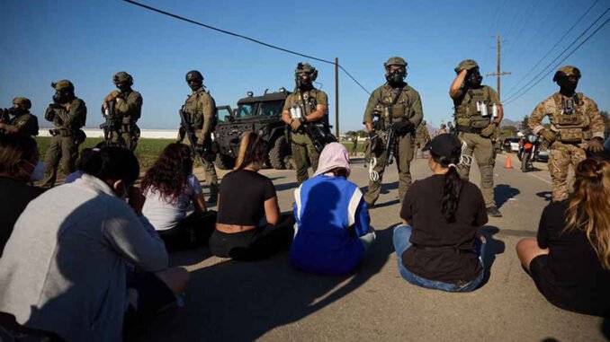 CAMARILLO (United States), 11/07/2025.- Federal immigration officials carrying out raids on two southern California cannabis farms clashed with protesters in Camarillo, California, USA, 10 July 2025....