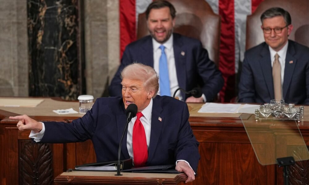Donald Trump habló durante una hora y 48 minutos durante su discurso récord sobre el Estado de la Unión y muchos en línea sugirieron que parecía...