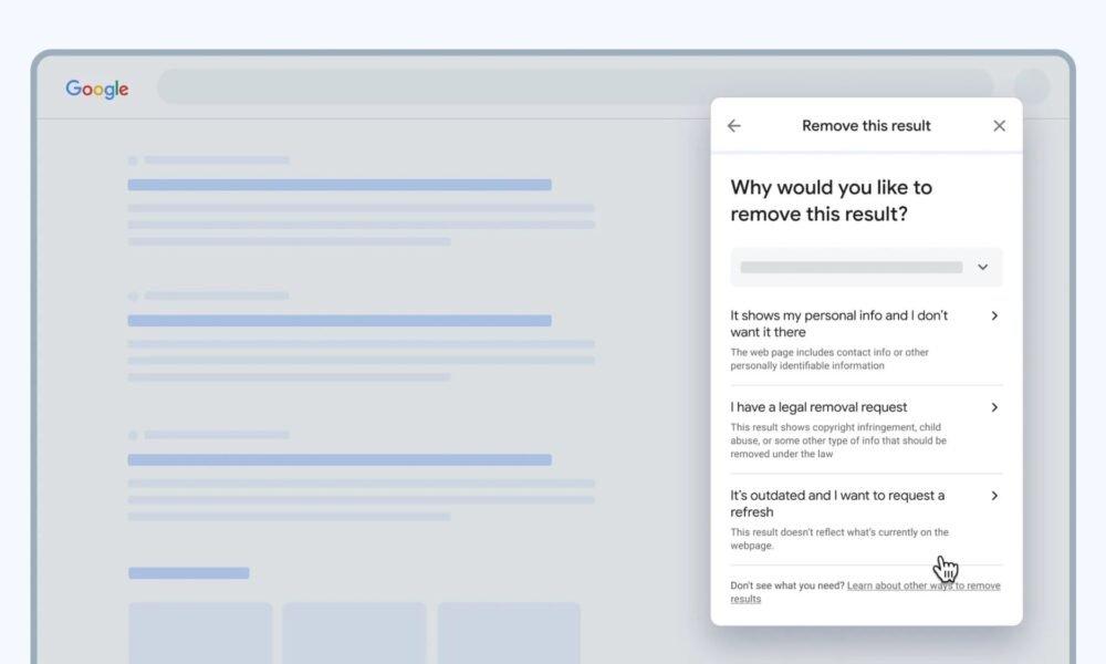 Tecnologia1 año agoGoogle simplifica la eliminación de tu información personal de los resultados de búsqueda