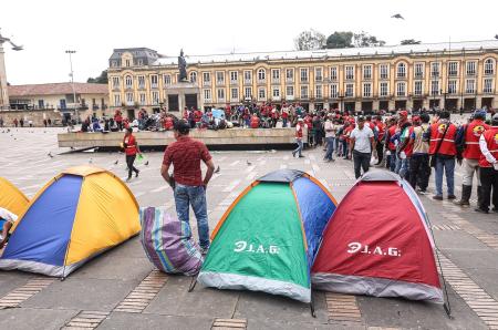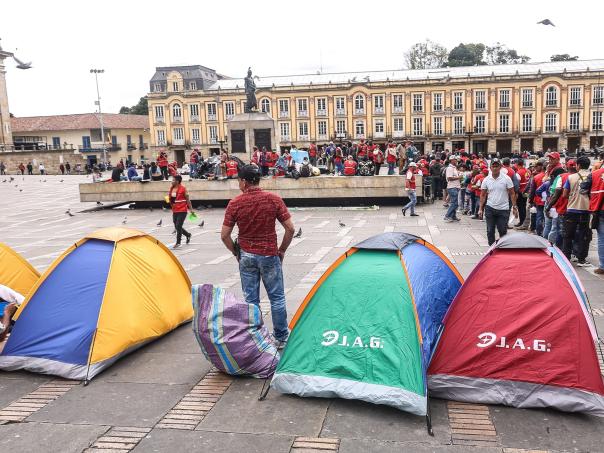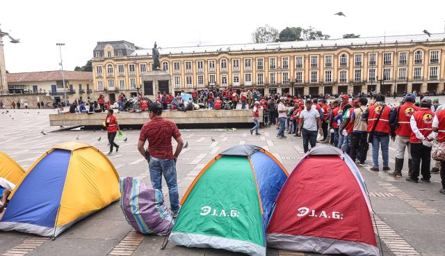 La protesta inició desde las 6:30 am Cuando parte de las delegaciones Salieron de la Plaza de Bolívar, Donde Han Estado Acampando Desde El Lunes 12 de Mayo.