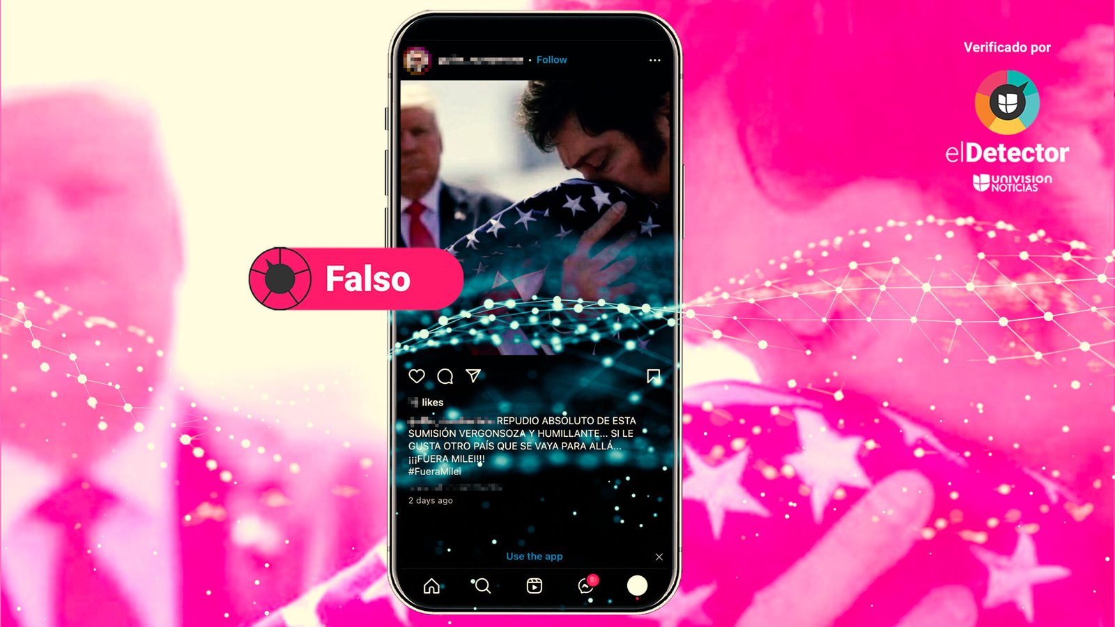 Esa fotografía que muestra a Javier Milei besando una bandera estadounidense es falsa: fue hecha con IA | Noticias Univisión