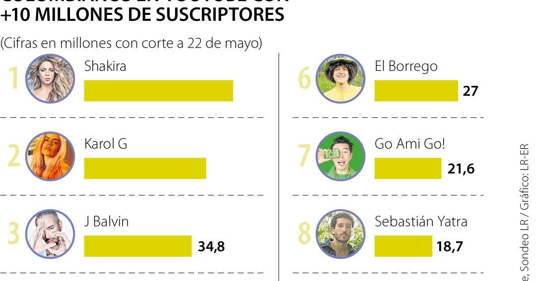 Está es la lista de los colombianos con más de 10 millones de suscriptores en YouTube