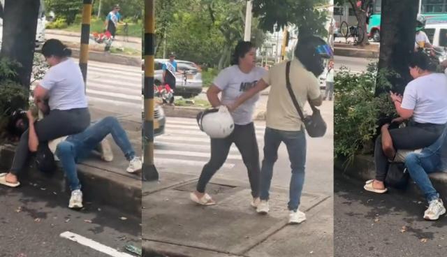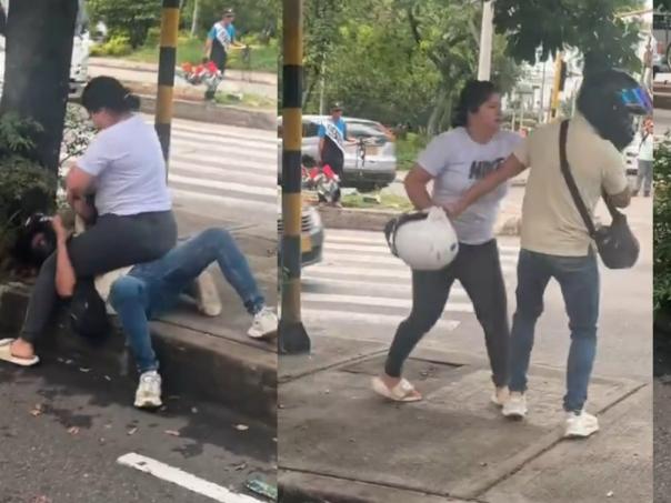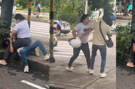 Fuerte Golpiza en Plena Vía de Bucaramanga: Mujer Agrede A Hombre Con Casco de Moto