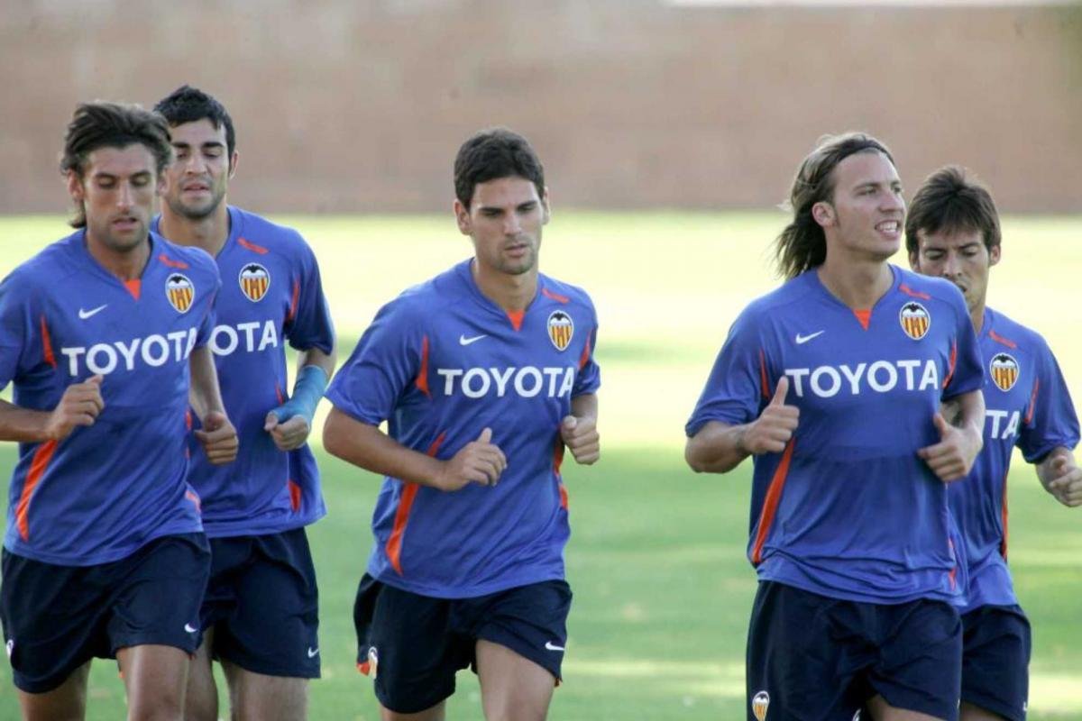 Entrenamientos y debut con el primer equipo del Valencia: “Era un equipo campeón: Aimar, Ayala, Cañizares… La evolución entre veteranos y jóvenes ha cambiado mucho. Ahora los niños tiene mucha cara, que para muchas cosas está muy bien, que no tienen vergüenza, pero para otras los valores se están perdiendo un poco. La de veces que me ha pasado a mí lo de no tener sitio en la camilla… el fisio me decía ‘vente media ahora antes de que lleguen estos’. Y yo llegaba y me decían el que fuera, Cañizares o Ayala ‘niño, bájate’. Y yo me esperaba el último y eso era así, y no pasaba absolutamente nada. Yo calladito, no decía ni mú. ‘Claro, claro, cuando tú puedas’. Es más, hasta te decían ‘¿qué haces en la camilla?’, y tenías el tobillo así, de una entrada que te había pegado un palo David Navarro o el que fuera, no tenían miramientos. Eso también era así… vamos, que no se te ocurriera tirar un caño. Tú te ibas de uno o lo que sea… o partidos filial contra el primer equipo. Para mí era la hostia, a mí me encantaba jugar esos partidos, me gustaba más que los partidos del fin de semana, porque era un escaparate para mostrarte, y el típico que la estás pidiendo todo el rato, la quieres… al final los del primer equipo decían ‘chaval, afloja un poco’. Porque encima esos partidillos jugaban los que no jugaban, puteados, el mister mirando…”.