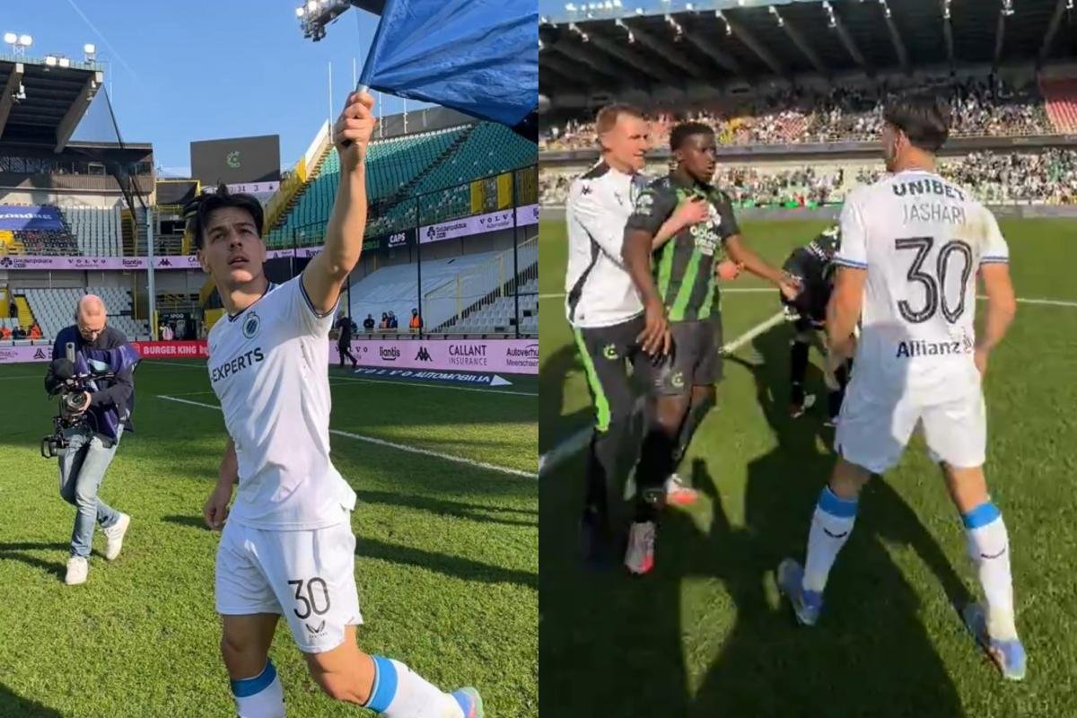 Sin embargo, con el partido ya finalizado y los jugadores de ambos conjuntos todavía sobre el césped del estadio Jan Breydel, el futbolista del Círculo Jashari decidió celebrar la victoria con una provocación hacia sus rivales de la ciudad.