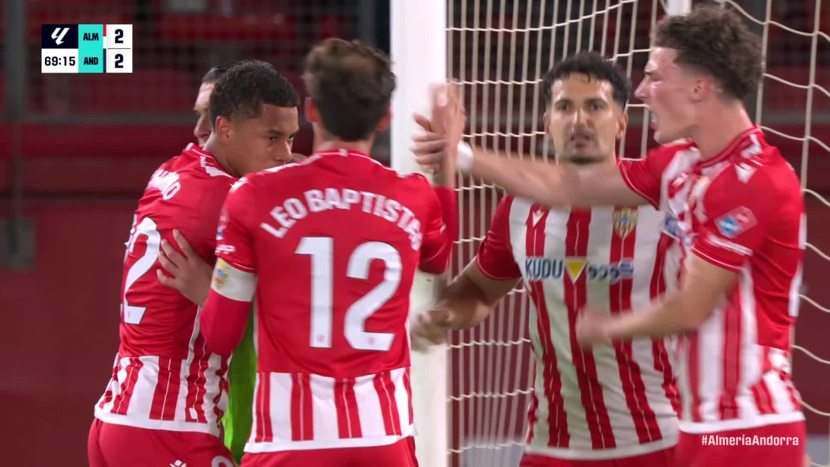 El duelo se convirtió en un ida y vuelta vibrante, un regalo para el neutral. Y así en la recta final el Almería volvió a golpear. Trenza de altos vuelos entre Arribas, Arnau Puigmal y Leo Baptistao que culminó el brasileño con un zurdazo al palo corto, tras leve desvío en un defensor, imposible para el meta visitante. Pudo sentenciar la escuadra local en el 93’ con otra gran entrega de Arnau que dejó solo a Thalys, pero el brasileño erró ante el portero. No hubo tiempo para más. El 3-2 resistió hasta el 95’, castigando el buen partido del Andorra y colocando al equipo de Rubi, al menos de forma provisional, en la tercera posición y con los mismos puntos que el Castellón.