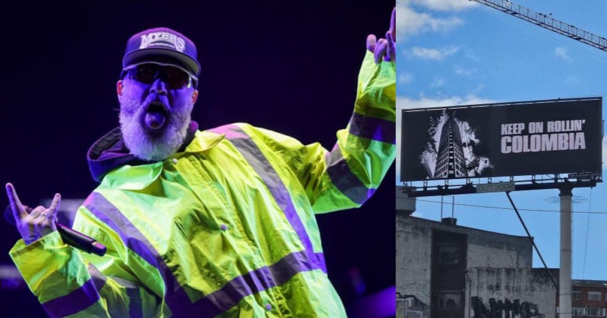 En las últimas horas se vieron en distintos puntos de Bogotá carteles con la frase “Keep On Rollin’ Colombia”, que haría referencia al estribillo de Rollin’ (Air Raid Vehicle), una de las canciones emblemáticas de la banda.