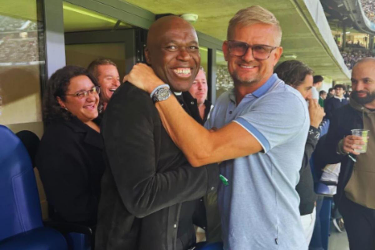 Pero mientras todos estaban pendientes de lo que pasaba en el terreno de juego, en el palco del Bernabéu se produjo un encuentro que probablemente no se haya visto nunca, los padres del francés y del noruego coincidieron por primera vez, los dos se fundieron en un ‘medio’ abrazo mientras tenían una sonrisa de oreja a oreja, imagen que la cuenta de instagram ‘22ventures‘ pudo plasmar.