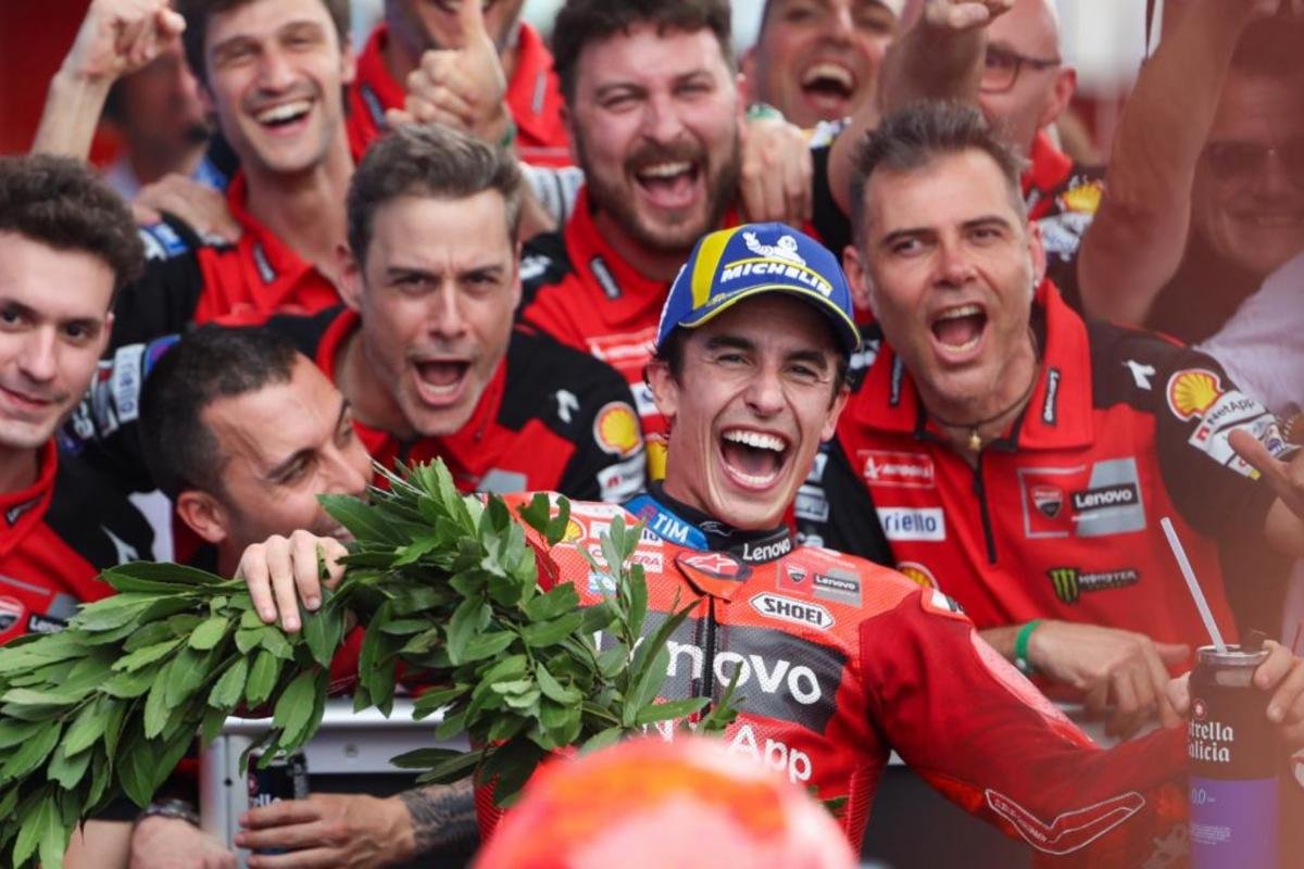 En 2024, algunos visualizaban su primera victoria con Ducati allí. Iba con el Gresini y una GP23. Se puso líder tras adelantar a Pedro Acosta, pero se accidentó en la curva 11. Se impuso Maverick Viñales, con la Aprilia. El triunfo del 93 tuvo que esperar varios meses, hasta Aragón.