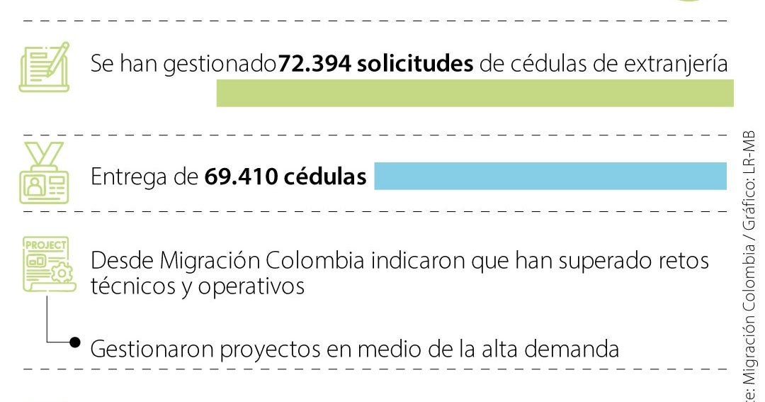 Migración Colombia dio a conocer que alcanzaron una tasa de impresión de 95,9% hasta agosto en el proceso de producción y distribución de las cédulas de extranjería. Indicaron que este resultado se da luego que pudieran superar varios retos técnicos y operativos.