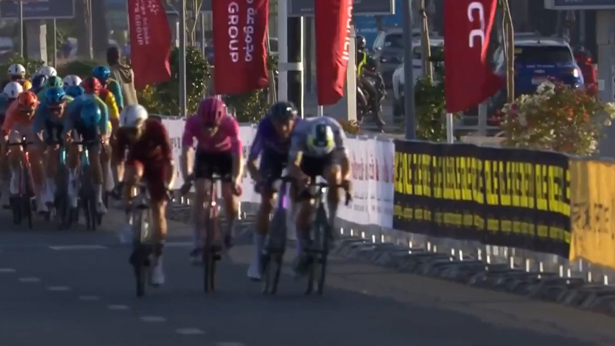Si bien es cierto que el UAE acostumbra a ser una prueba de máximo nivel para los esprínteres, esta edición la nómina va más justa, o por lo menos no se vislumbra ningún misil que pueda hacer sombra a Milan. En la etapa de hoy, encima la nómina se redujo más tras una caída que afectó a gente como Jakobsen, Hayter o un Daan Hoole que se vio obligado a retirarse.