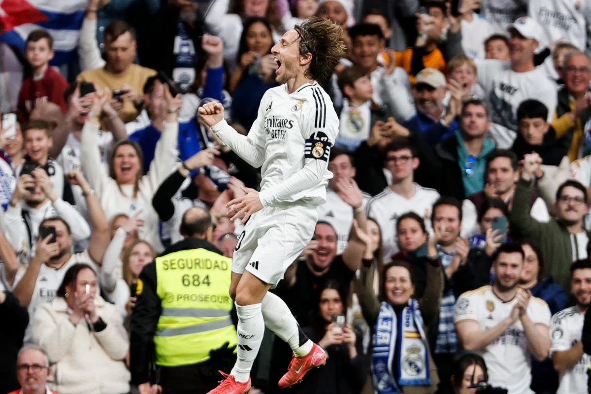 Luka Modric salió ovacionado del Bernabéu. No es novedad, ni será la última vez. El golazo que firmó ante el Girona fue el punto que determinó el giro del partido ante los catalanes. El goleador más veterano de la historia del Madrid enganchó una volea monumental que le valió la ovación inmediata, otra más al salir del campo y, además, su victoria número 381 en los 574 partidos que ha disputado como madridista.