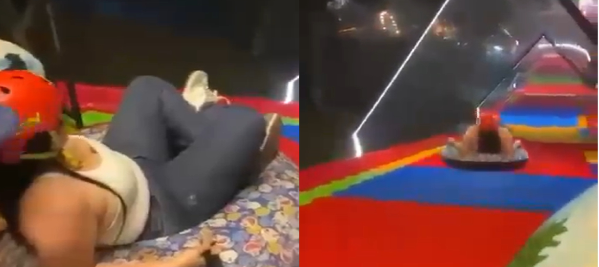 En un video quedó registrado el momento en que le explicaban cómo sujetarse antes de deslizarse. Sin embargo, al llegar al final del recorrido se escucha un fuerte golpe y de inmediato los trabajadores corrieron a auxiliarla.