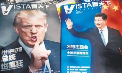 Revista con las imágenes de Donald Trump, líder de Estados Unidos, y Xi Jinping, dirigente de la República Popular de China. / AFP / NICOLAS ASFOURI...