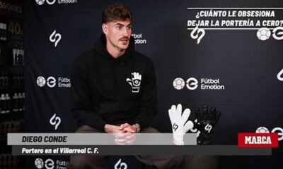 Diego Conde (Madrid, 1998) acelera las respuestas mientras la tienda de Fútbol Emotion de Valencia se va llenando de aficionados y curiosos. Presenta su nuevo guante...