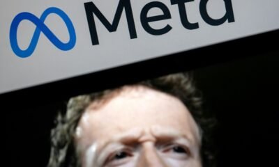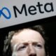 Una imagen del presidente de Meta, Mark Zuckerberg, y el logo de la empresa, fotografiados el 7 de enero de 2025 en Washington (Drew Angerer) Meta...