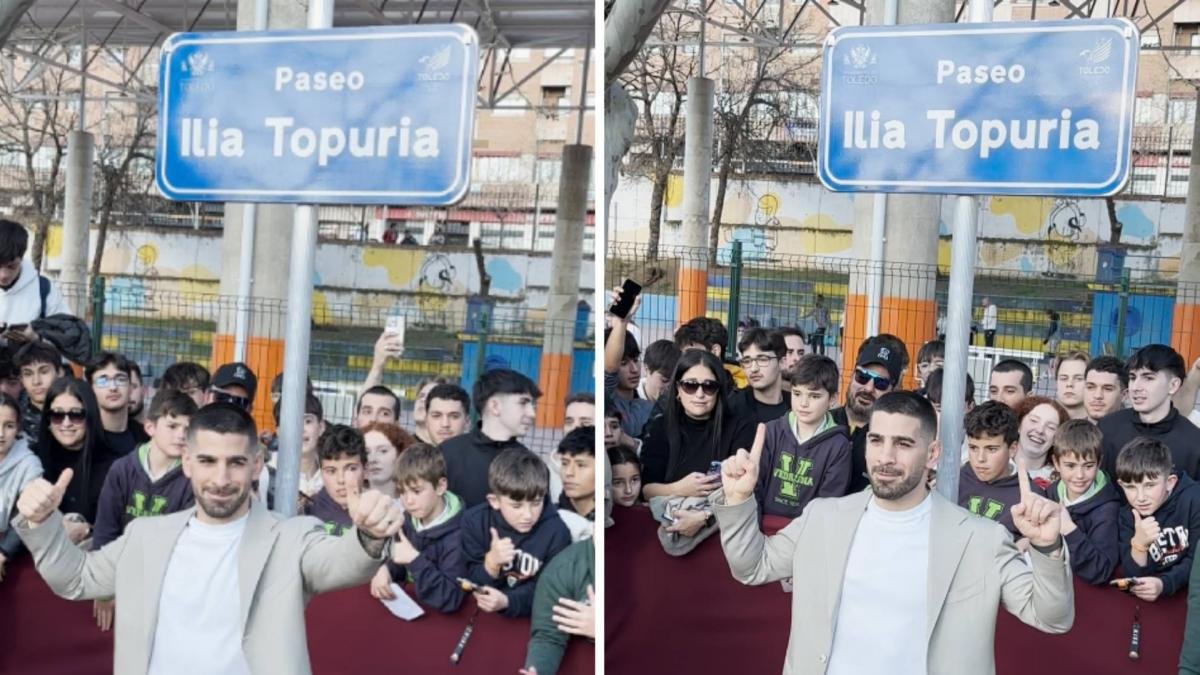 El Paseo Ilia Topuria ya es una realidad en Toledo. ‘La Leyenda’ (el apodo de ‘El Matador’ ya es historia), inauguró hoy el paseo que lleva su nombre en la Escuela Central de Educación Física. Lo hizo con una sonrisa de oreja a oreja, visiblemente emocionado y recibiendo el cariño de cientos de personas congregadas.