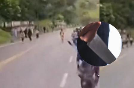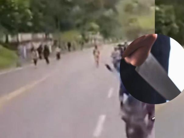 En las imágenes se podía observar que alrededor de 20 personas tenían en manos palos y algunos hasta cuchillos apuntando contra el parabrisas del enorme automóvil.
