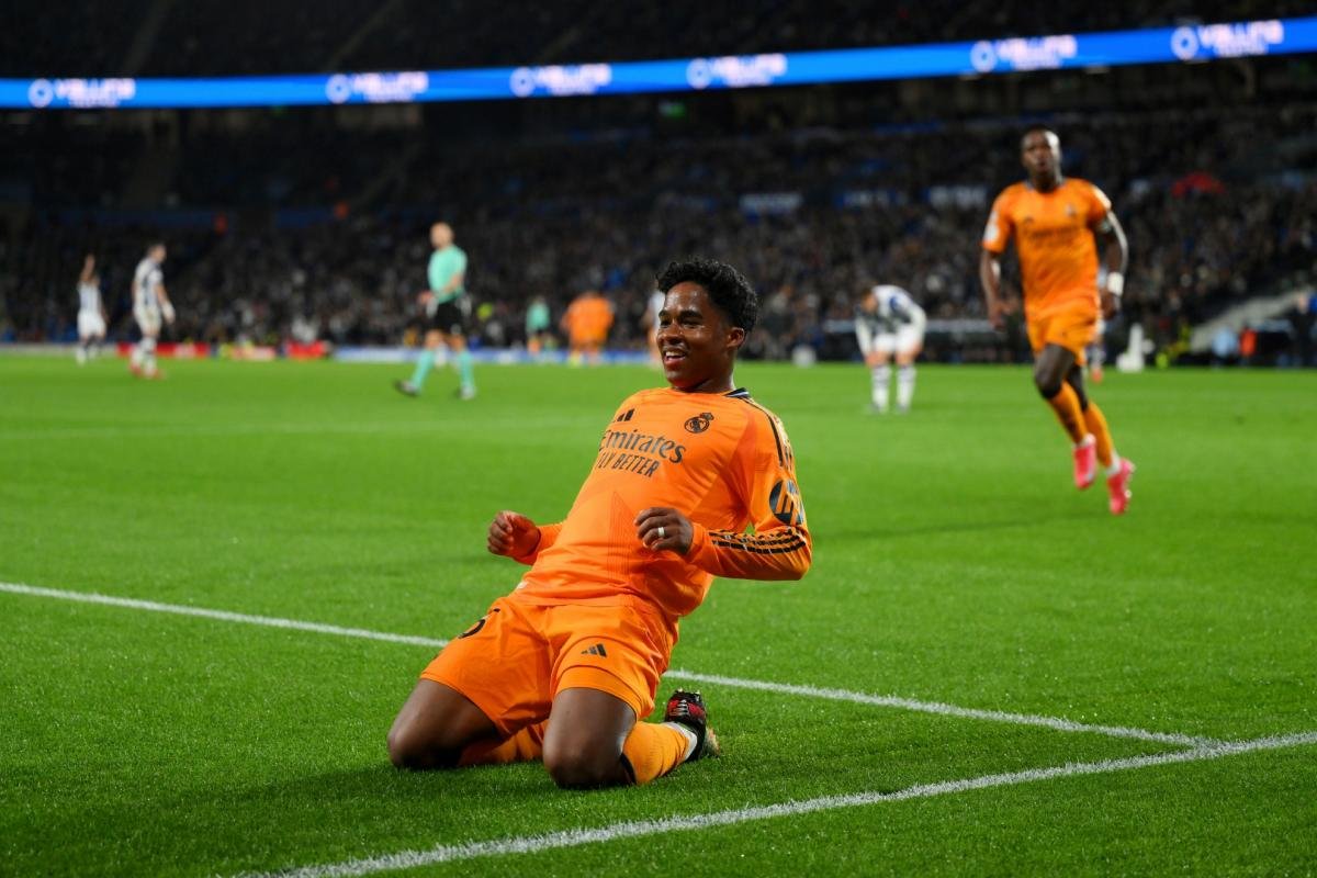 ESTADIO REALE ARENA ANOETA PARTIDO IDA SEMIFINALES COPA DEL REY REAL SOCIEDAD-REAL MADRID ENDRICK, CELEBRA TRAS MARCARFOTO CHEMA REY