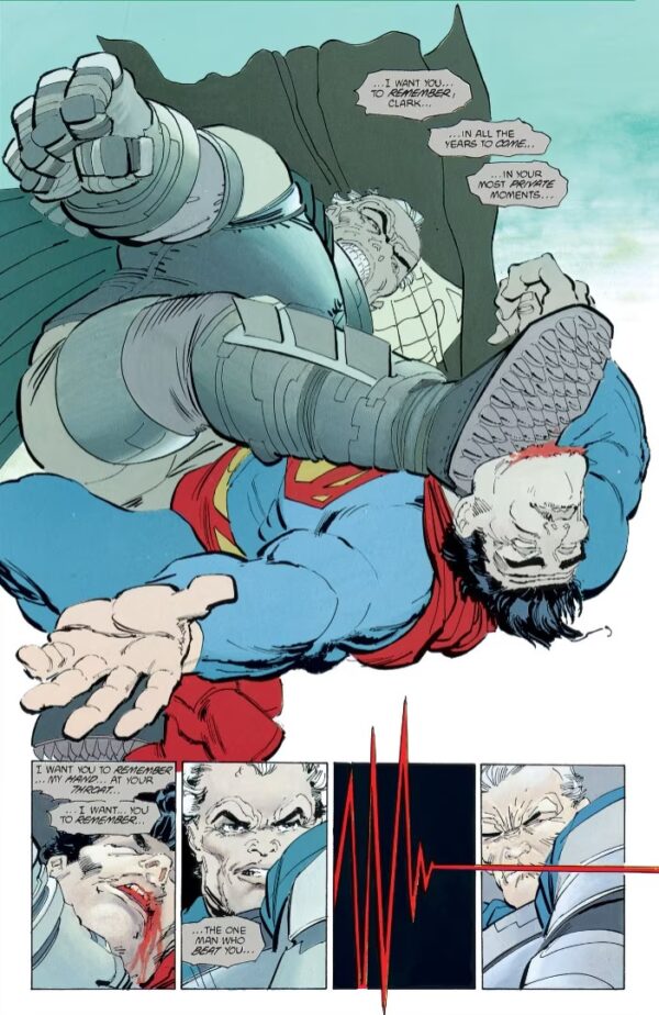 Un momento con el que Frank Miller dejaba clara cuál era su visión de los superhéroes, siguiendo la estela del por aquel entonces, reciente Watchmen de Alan Moore, si bien con una pespectiva diferente, más conservadora y filofascista.