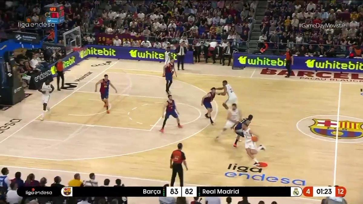 Era cuando el Barça apretaba más. Una canasta de Brizuela y otra de Parra habían puesto por delante al Barça, 83-82. A 1:21 para el final, Llull asumió la responsabilidad del lanzamiento para clavar ese triple con un rebote afortunado. Era el cuarto de su cuenta, en cinco intentos, para acabar con 19 puntos y le daba de nuevo la ventaja al Madrid.