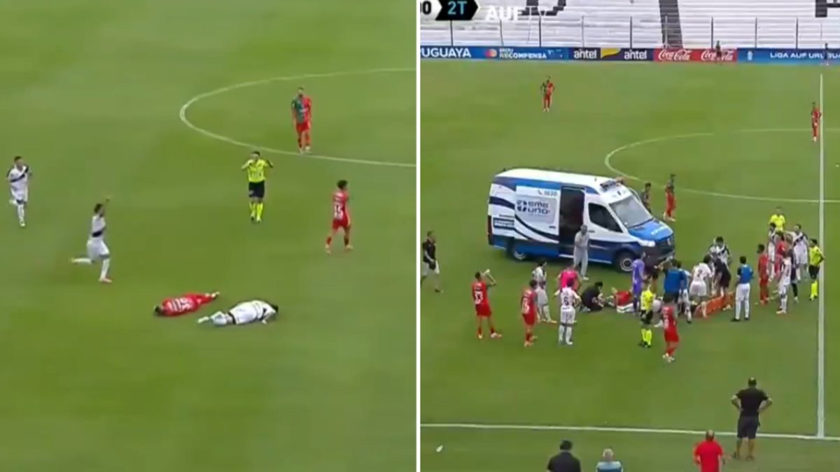 Escalofriante choque en pleno partido de Uruguay dejó a jugador inconsciente: la ambulancia ingresó al campo a atenderlo de emergencia
