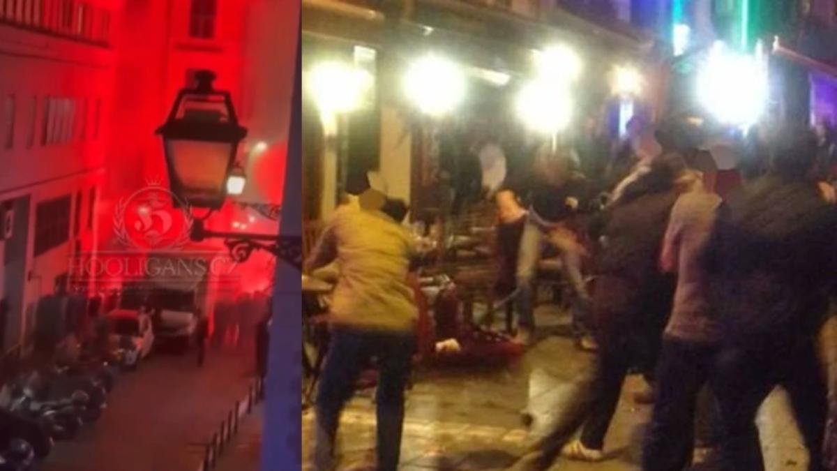 En las imágenes, virales en ‘X’ y publicadas por la cuenta ‘Hooligans.cz Official’, se puede ver cómo en la batalla campal ocurrida en el local volaron las sillas y se lanzaron bengalas de un lado a otro de manera constante hasta que, tras varios minutos de pelea, los seguidores realistas abandonan el lugar perseguidos por los ‘Ultras Lazio’, que incluso se ensañaron con algún aficionado vasco rezagado.