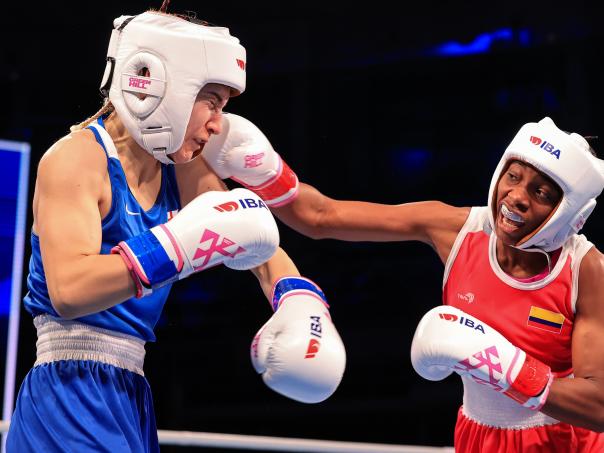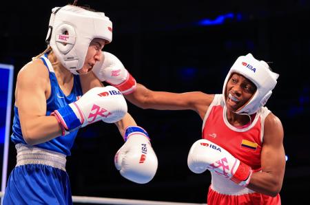 La pugilista colombiana avanzó a la segunda etapa tras vencer en su primer encuentro a Trona Pirosmanashuli, de Georgia, en el primer asalto.